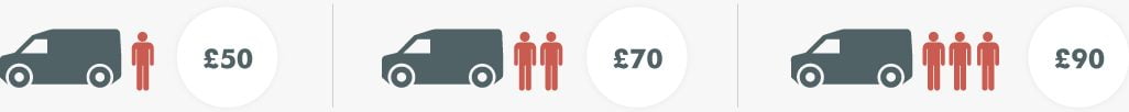 We only charge you from when we arrive to when we complete the move. For jobs outside London a fuel surcharge of £0.75p per mile from the M25 to destination (one way only) is added.